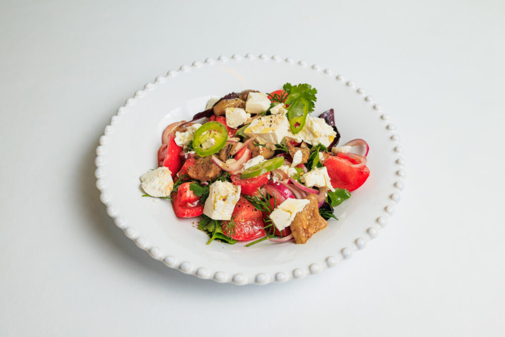 ТЕПЛЫЙ САЛАТ С БАКЛАЖАНАМИ И БРЫНЗОЙ
